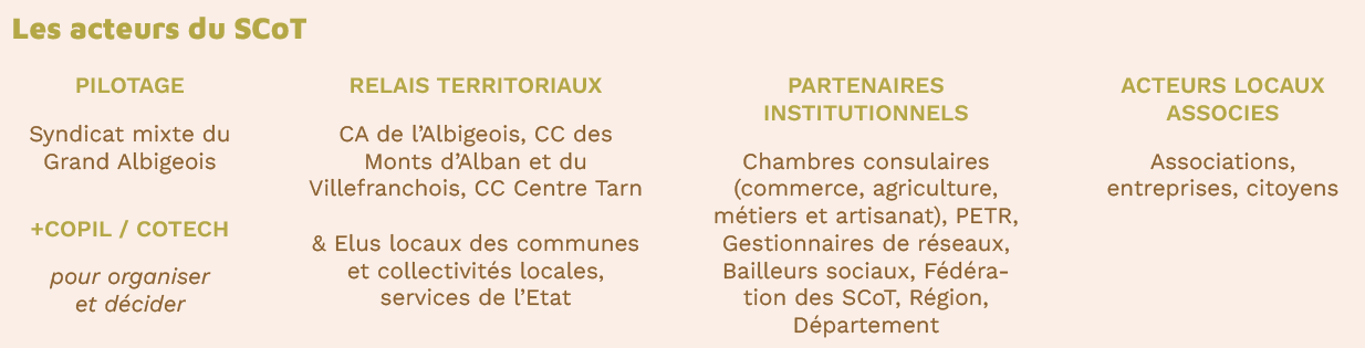 Un SCoT (Schéma de Cohérence Territoriale) constitue à l’échelle intercommunale le principal outil de planification stratégique du territoire. Sa finalité principale est de définir un projet d’aménagement cohérent et durable du ter- ritoire sur le long terme (environ 20 ans), en organisant son développement et en coordonnant l’ensemble des poli- tiques publiques (urbanisme, habitat, mobilité, environnement, développement économique).