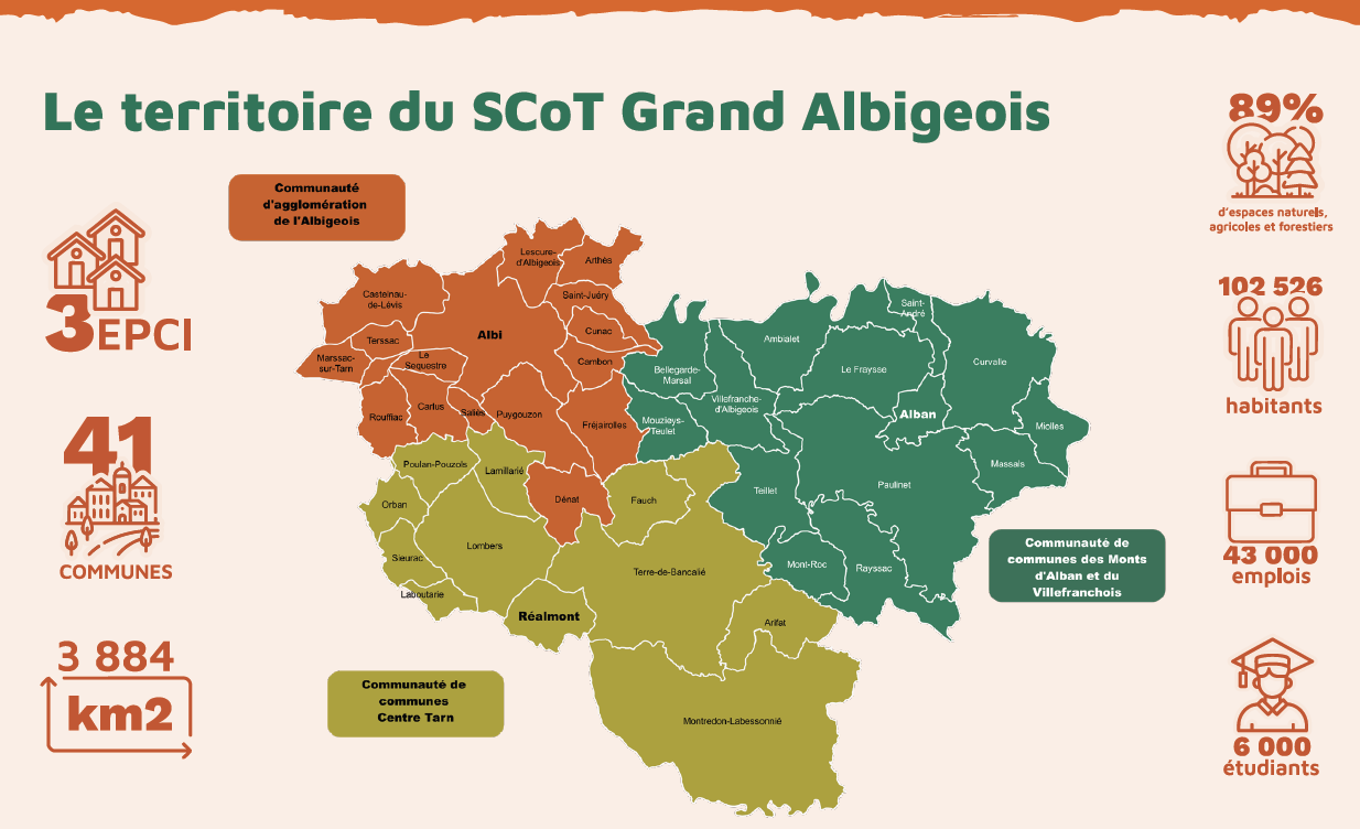 Mobilités et accessibilité : Forte dépendance à la voiture. Besoin de développement de l’offre de trans- ports collectifs et des mobilités douces. Connexion entre pôles urbains et villages, et articulation avec les bassins voisins (Toulouse, Rodez, Castres).