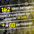 La concertation digitale était une 1ère étape de la formalisation du livrable puisque depuis, vous étiez appelés à poster et liker vos idées préférées jusqu'à hier soir, minuit. Vous pouvez donc d'ores et déjà consulter toutes les idées émergeantes sur l'espace de concertation Colidée.